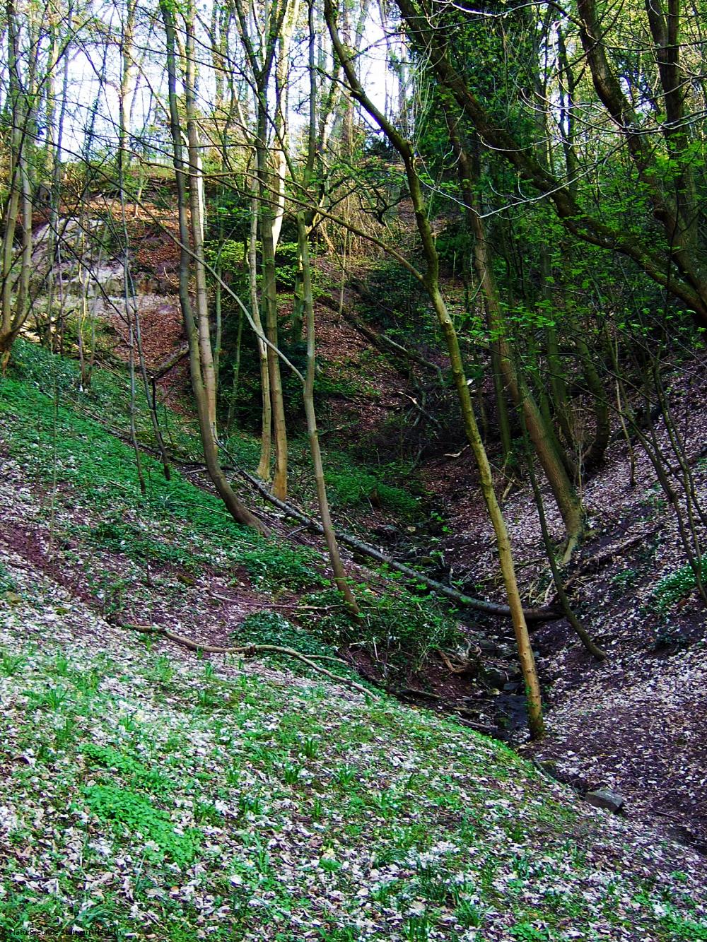 Serpentinen führen zunächst steil aufwärts zu einem ersten Aussichtspunkt, bevor es dann hinunter zur Fangelsbachklinge geht – eine der vielen Schluchten, wie sie in die Keuperhänge rings um Stuttgart eingekerbt sind. Sie entstehen, wenn das Wasser den nicht sehr widerstandsfähigen Mergel aus Ton und Kalk ausräumt und die härteren Sandsteinschichten untergräbt. An solch kühl-feuchten Standorten finden sich besonders arten- und strukturreiche Schlucht– und Hangmischwälder (Esche, Ulme und Ahorn), die sich hier zu Naturwäldern entwickeln können, da die Bewirtschaftung an steilen Hängen zu mühsam ist.