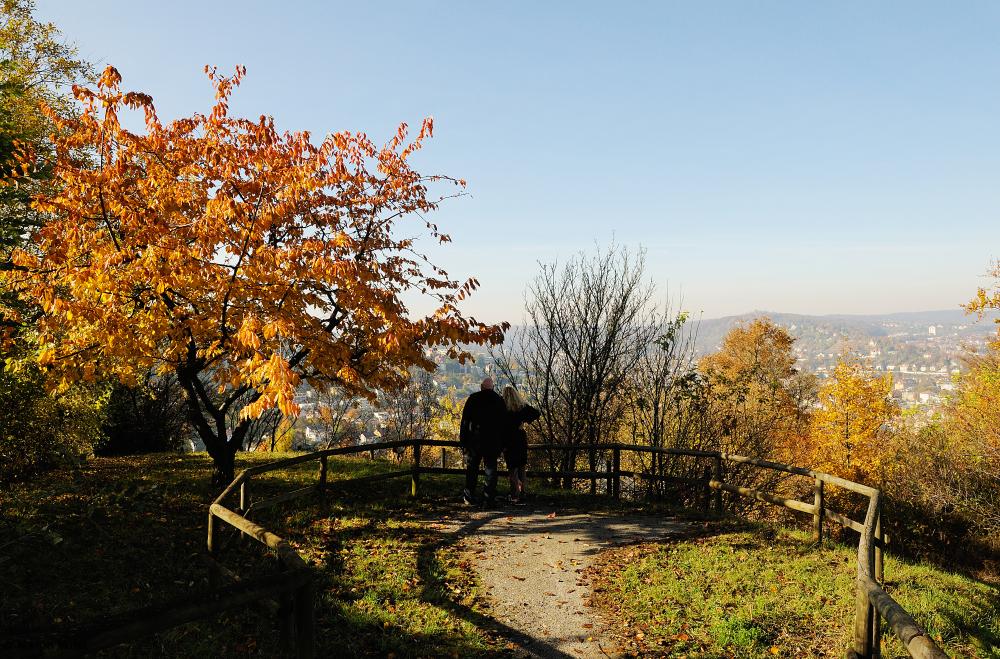 Fast am Ende der Oberen Altenbergstraße verlässt man urbanes Gelände und biegt rechts in den Landschaftspark Wernhalde ein. Wernhalde kommt übrigens von „Wülenhalde“ – der Ort, an dem einst die Schweine wühlten. Das etwa 7 Hektar große Landschaftsschutzgebiet am südlichen Rand des Stuttgarter Talkessels wurde Anfang der 80er Jahre im Rahmen eines Jugendsozialprojekts entmüllt und instandgesetzt. Die Obstwiesen und die Bäume im Park werden seither von der Stadt naturnah gepflegt.