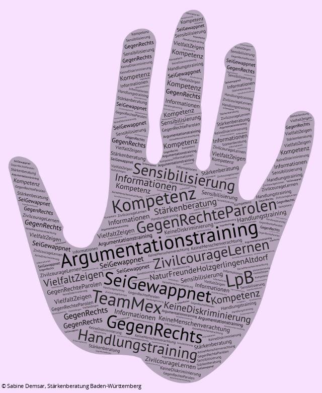 Hierbei werden Strategien für zivilcouragiertes Verhalten in der Konfrontation mit rechten Parolen und Vorurteilen vermittelt und es bietet Raum, um diese einzuüben. In spielerischen Modellsituationen wird die eigene Reaktions- und Argumentationsfähigkeit ausgebaut. Menschenverachtende Äußerungen, politische (Pseudo-)Erklärungen und populistische Sprüche werden auf ihre emotionale Basis, ihre Wirkung und ihre inhaltliche Bezugnahme überprüft. Eigene Überzeugungen und Stärken werden für die Argumentation nutzbar gemacht.