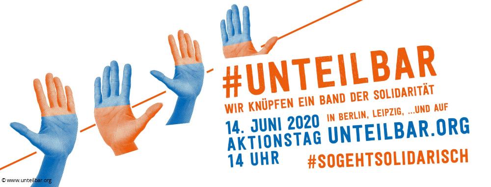 am Sonntag, dem 14. Juni 2020 findet um 14 Uhr in Berlin eine große Aktion des Bündnisses #unteilbar statt. Gemeinsam soll ein „Band der Solidarität“ vom Brandenburger Tor bis zum Hermannplatz in Neukölln gebildet werden. Unter dem Motto „#SoGehtSolidarisch!“ wird ein breites Bündnis aus Klimabewegung, antirassistischer und antifaschistischer Bewegung, Parteien und sozialen Organisationen für eine solidarische Gesellschaft und geben Rassismus und Ausgrenzung demonstrieren.